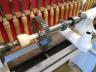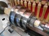 I turned a couple of dummy wooden mandrels making these a friction fit in the respective bores. Wanting to retain all my fingers and thumbs I was extremely mindful of the revolving gear teeth spinning at 1,500 revs; I'm used to operating lathes and would recommend a novice doing such work not to lose concentration because gears such as this won't only bite they will bite hard. Nothing whatsoever should be wrapped around fingers or hands such as abrasive paper or cloth whilst working with a lathe in motion and it doesn't pay to stand in "the line of fire" because a heavy gear or pulley becoming detached at speed won't be a pleasant encounter. Very gently does it and keep checking the tail-stock is nipped up. Again for novices doing similar work for the first time; when turning these dummy mandrels the mandrel doesn't have to be a perfect fit full length in the bore; it can be "wasted" in its middle as long as there is about an inch at each end to allow a friction fit to impart drive.