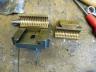 Very little has gone right lately; when I removed the masking tape the tape left most of it's adhesive sticking to the carriage items this alone taking well over an hour to remove without damaging the new paint. This morning I spent a while eliminating backlash from the top slide; the screw was easy enough because it ran through a long thread which could be adjusted but where it ran through the casting the retaining collar had become worn which is to be expected given the lathes age. I assembled the top slide in order to measure the backlash which I found using feeler gauges to measure 18 thou. Given just how hard it is to get time on this Lorch I wanted a quick but effective solution which didn't involve lots of setting up and machining. I settled for a shim and no way did I want to play around turning a shim this thickness on the Clarke so I searched the garage armed with micrometer looking for suitable material. The nearest I found was 15 thou being a transformer lamination which is near enough so I made a shim from this; it worked a treat so I then fully assembled the top slide. I've included a picture for novices to this kind of work because it isn't obvious how to measure backlash; one thing I was aware of was that the worn parts would no longer be dead flat which could only be attained by re-machining but allowing the 3 thou worked a treat in this case.