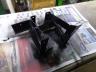 Having used one of those saws I would say his stance was correct but he should have done another shuffle just before the point of blade breakout to reduce the out stretching of his arm, with a saw that size and weight you have to shuffle to a certain extent otherwise it's possible to loose control if your arms are at the wrong angle, especially at the start of the cut and the end of the cut and even more so on a wider beam.